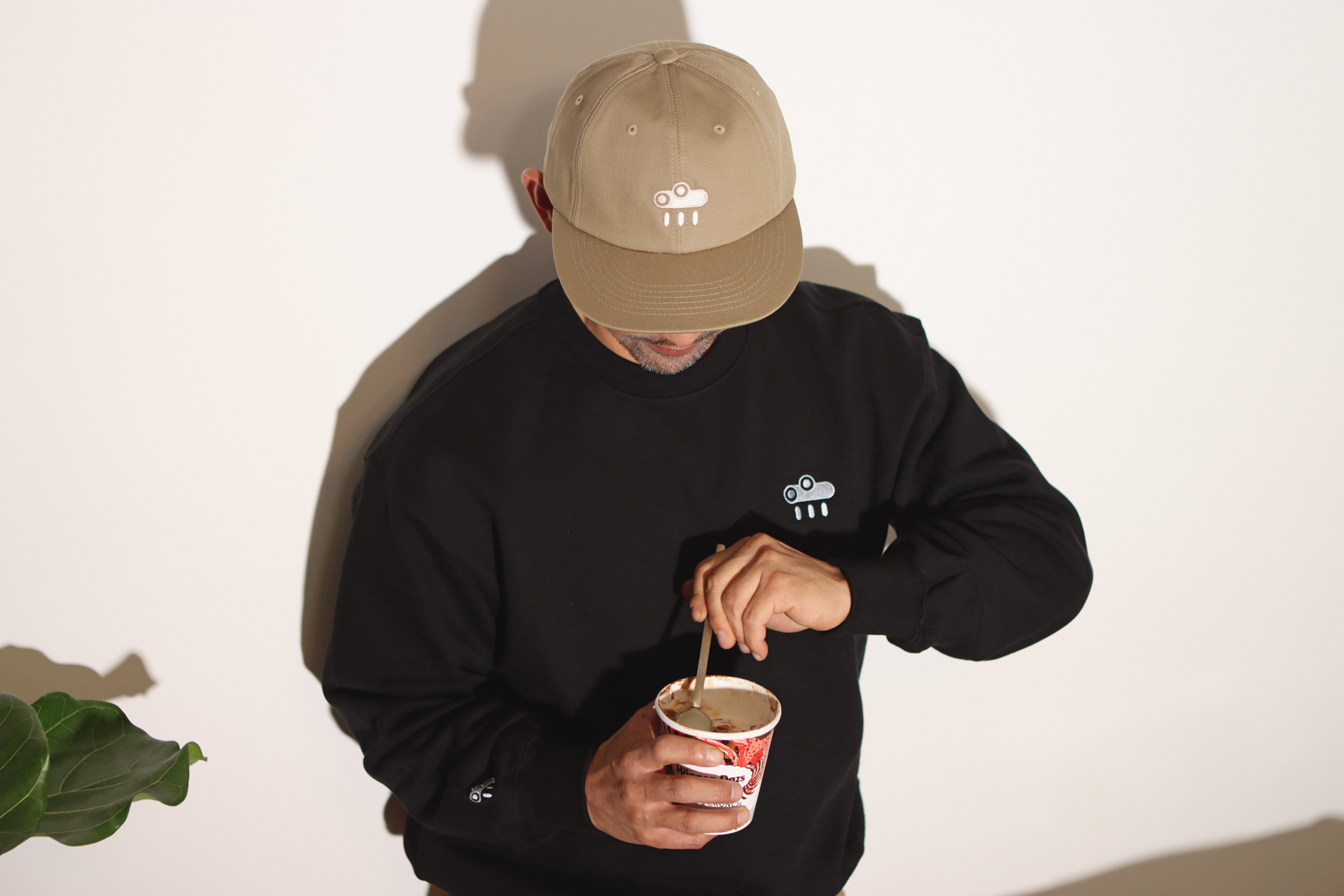 3. 포인트 라벨은 두 가지 메시지를 담고 있습니다. 라벨이 보이는 앞면은 브랜드의 풀네임이, 모자 한쪽에는 이스터 에그 메시지인 "TOO MUCH WORK WILL KILL YOU" 가 보입니다. 너무 바쁜 일상에 매몰되어 있는 자신에게 한 숨 돌리라는 메시지를 QUEEN 의 노래 제목을 패러디하여 전달합니다.