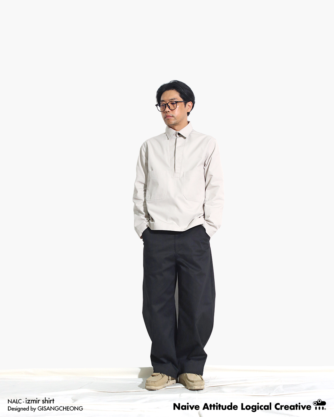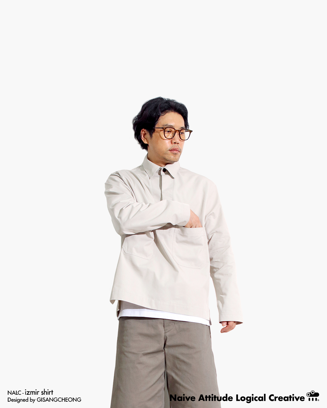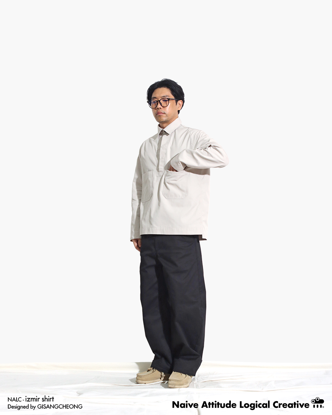 ✔️ 정중앙을 가르는 버튼 플라이 디자인이 특징인 튜닉 셔츠입니다.