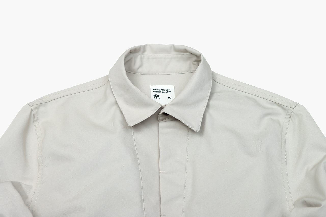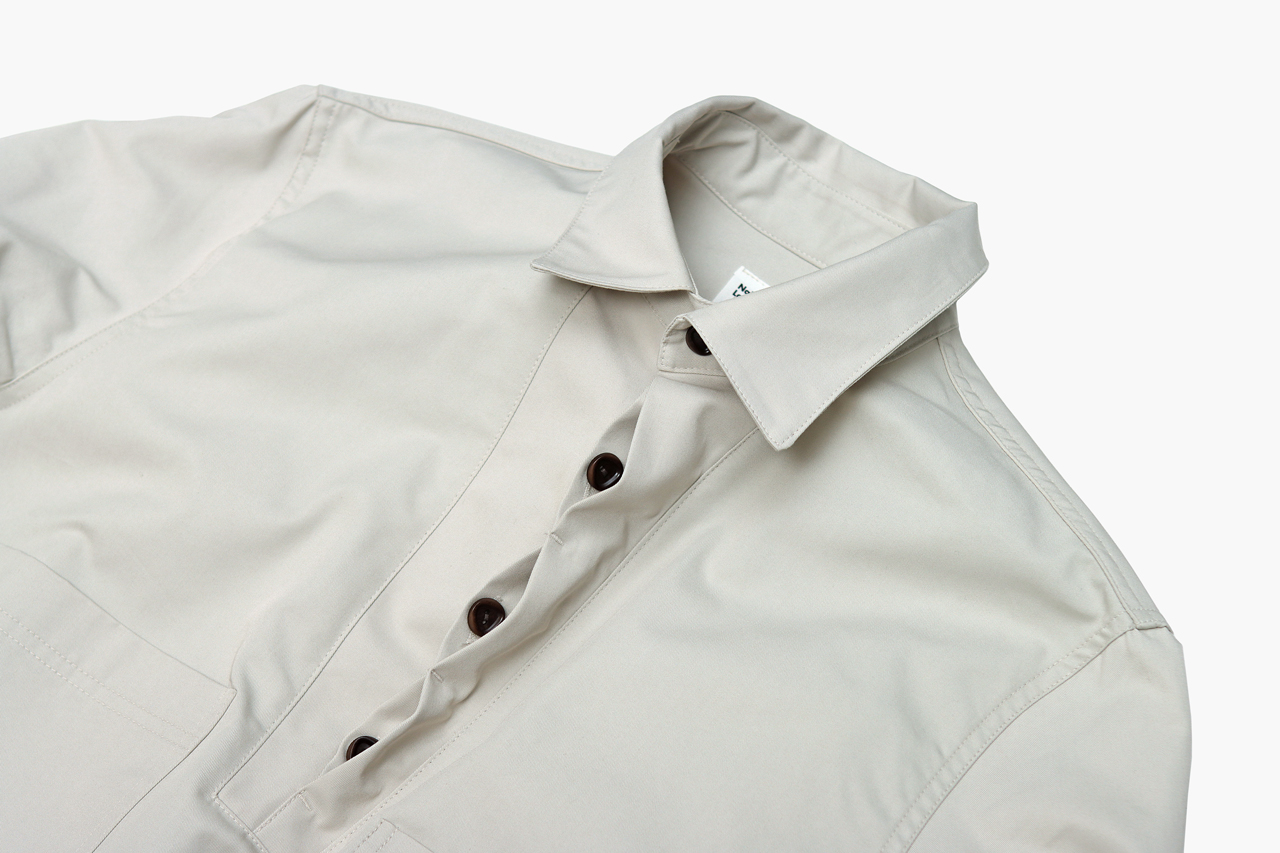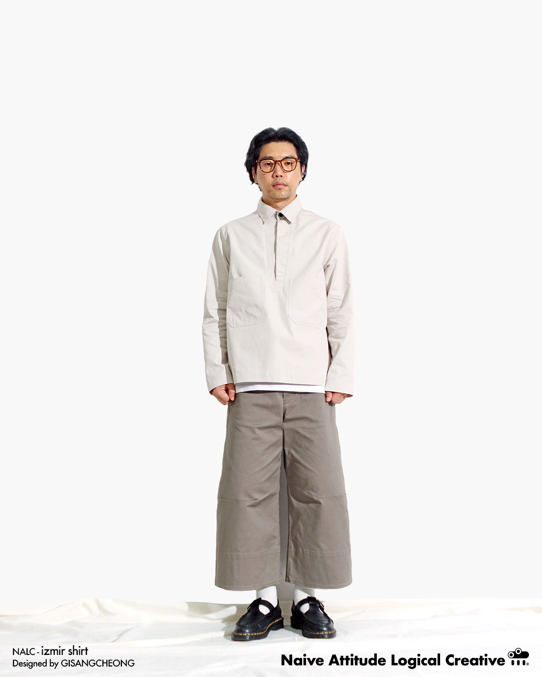 ✔️ 정중앙을 가르는 버튼 플라이 디자인이 특징인 튜닉 셔츠입니다.