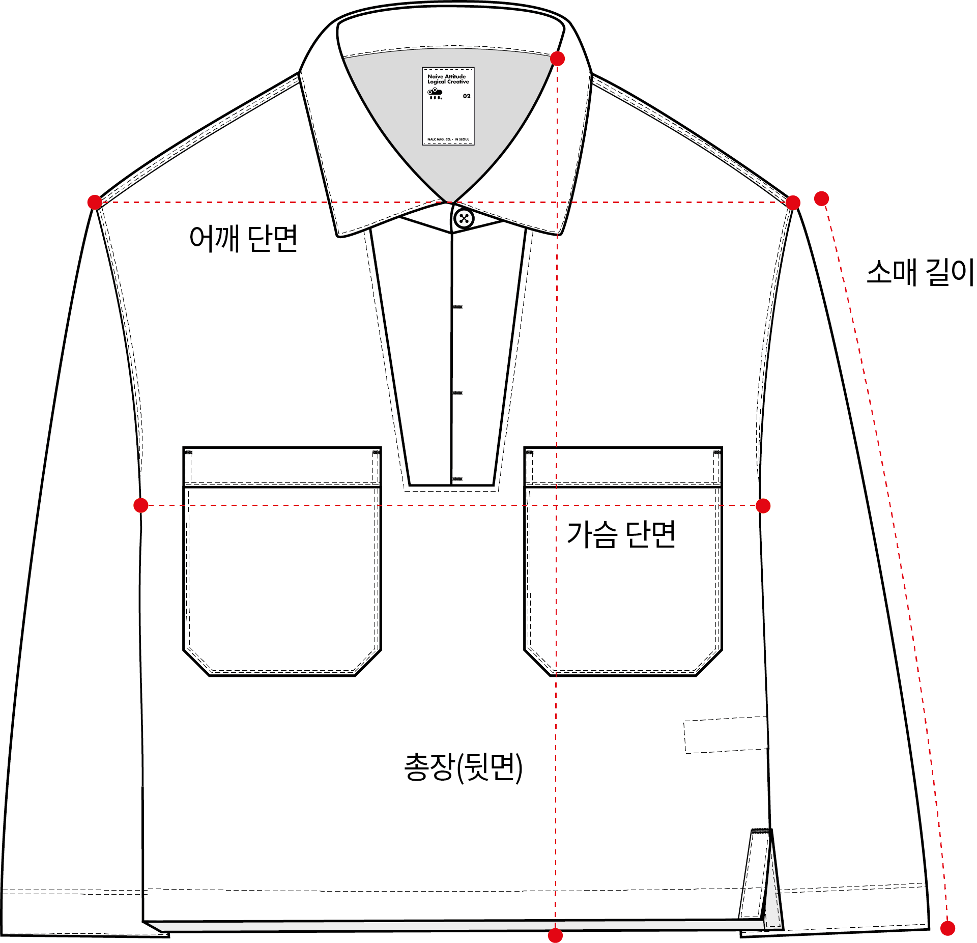 | SIZE | 총장 | 어깨 단면 | 가슴 단면 | 소매 길이 |