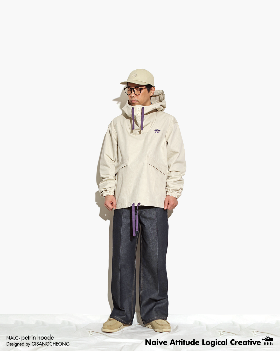 ✔️ 후디 조절 끈과 밑단 조절 끈은 톤온톤 컬러의 헤링본 코튼 소재입니다.