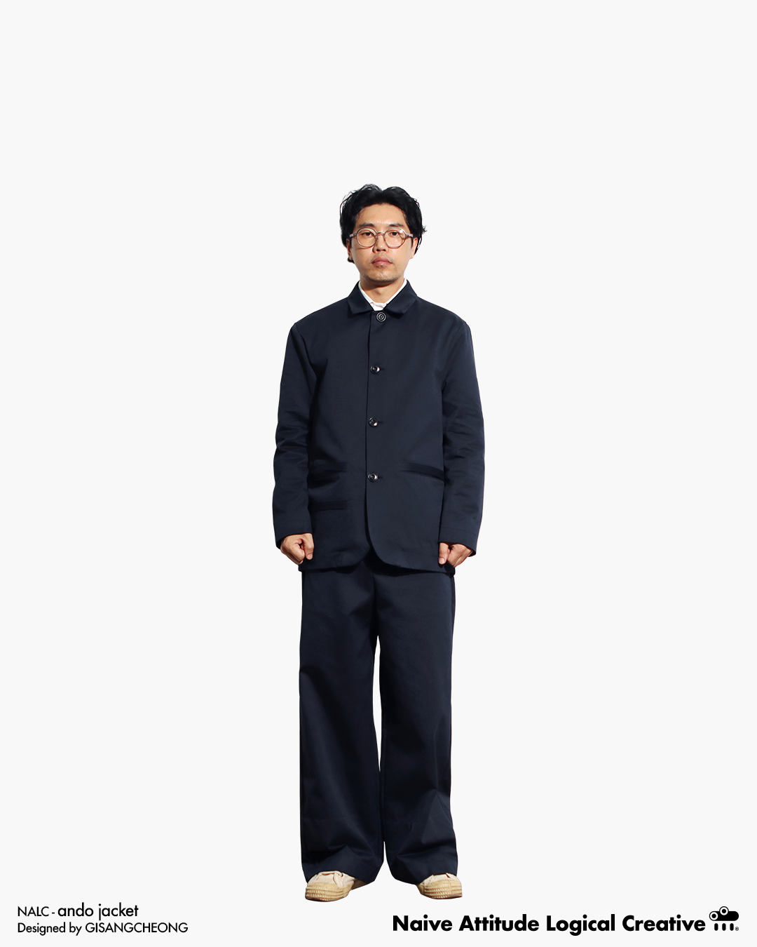 ✔️ 워크 또는 클럽 자켓이라 부르는 셋업 스타일을 독특한 포켓 구조와 배색 안감을 적용하고 여러번 교정한 패턴을 통해 재해석 했습니다.